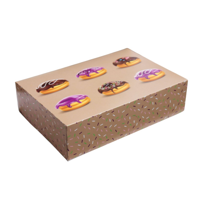 Fánk mintás doboz. Téglalap alakú, tökéletes választás fánkok csomagolására és szállítására.