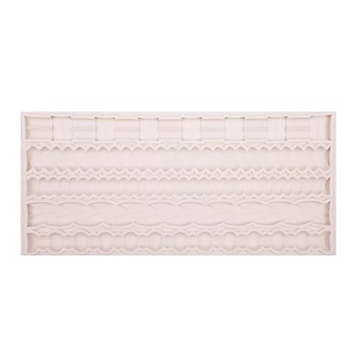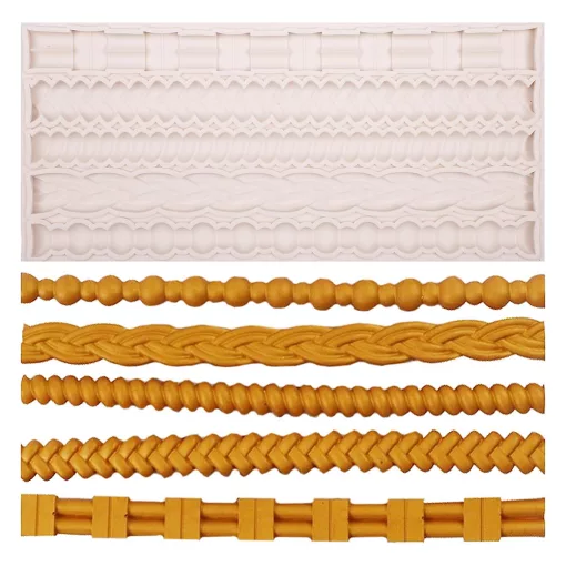 Különböző sormintákat mintázó szilikon marcipán és fondant forma, melynek segítségével akár otthon is el tudod készíteni a süteményekre vagy tortára szánt lánc és kötél dekorációt.